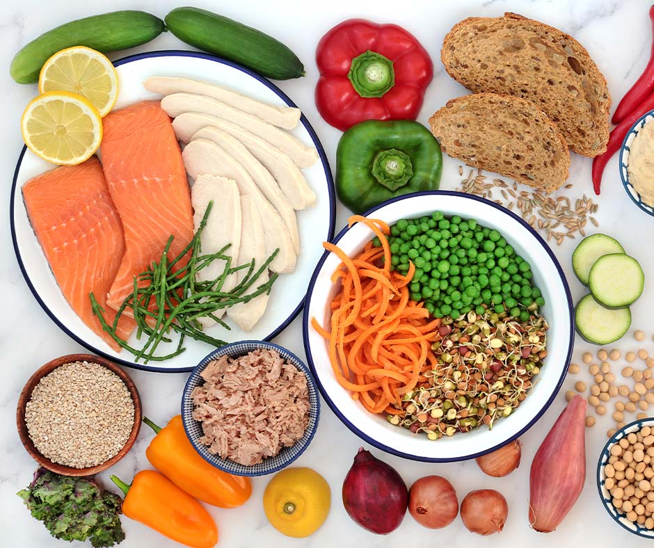 Consuming more fibre-rich foods helps to slow down the rate at which glucose is being released into the bloodstream, keeps you full and improves bowel function. Vegetables, fruits, nuts, legunes and whole grains are some foods that are high in fibre. Remember 2+2 – include 2 servings of fruits + 2 servings of vegetables daily.